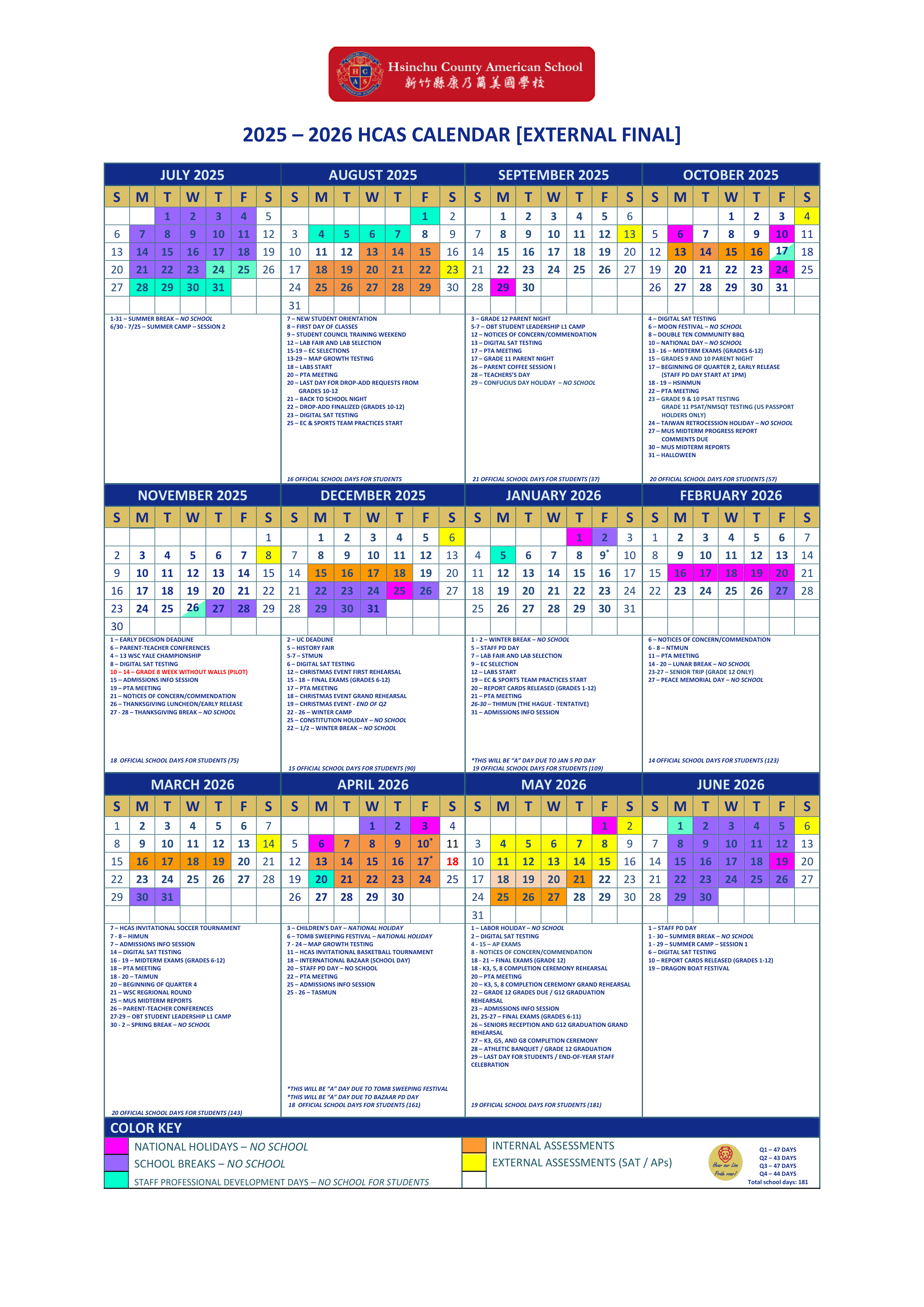 Click HERE to Download the PDF file of the " HCAS School Calendar" (2025-2026 School Year)
